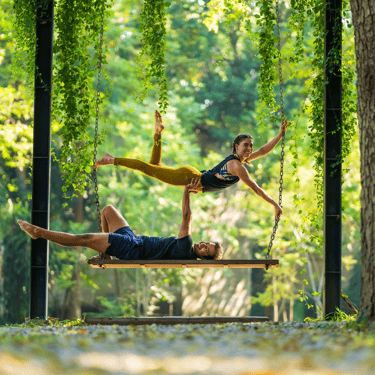 After 5 years of working a desk job, I left the corporate world behind in pursuit of movement. Along the way, I found Yoga, Acroyoga, Slacklining and Partner Therapeutics